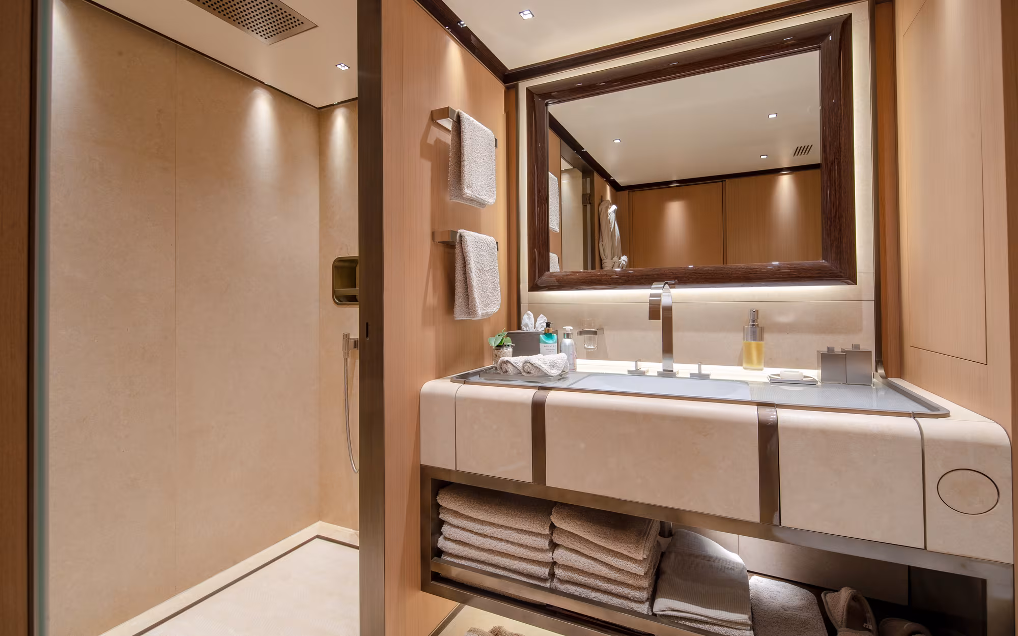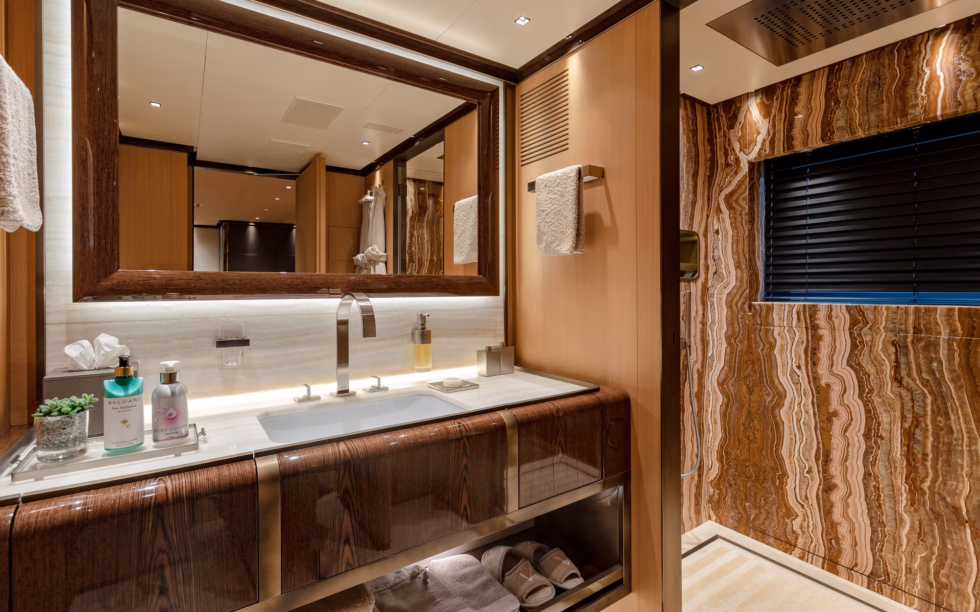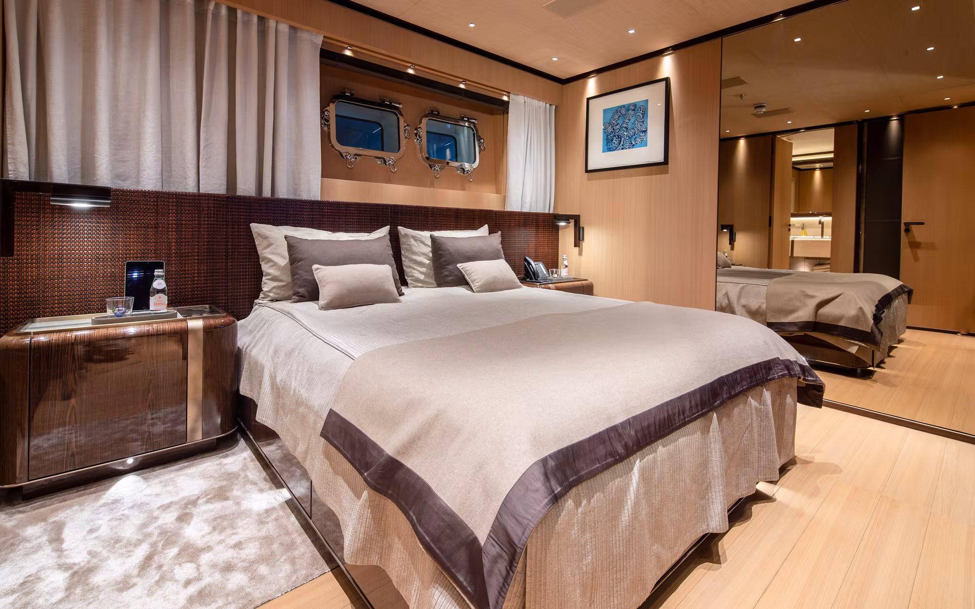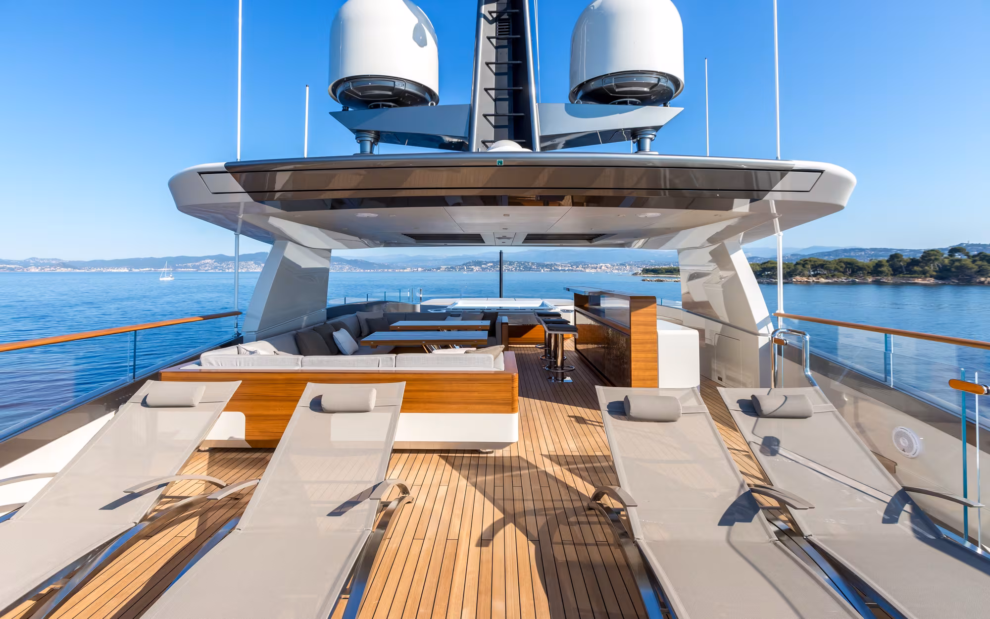 Motor yacht VERTIGE represents a rare chance to acquire the first—and most celebrated—Tankoa S501. Delivered in 2017 and freshly refit in 2023, she fuses contemporary poise with timeless detailing. Francesco Paszkowski’s exterior—winner of the 2017 Best Exterior Design—pairs clean, assertive lines with an inviting deck plan, while the Paszkowski/Casprini interior draws on 1950s Art Deco in bleached teak and polished rosewood, made luminous by full-height glazing. The master with twin fold-out balconies and a main-deck VIP echo arrangements seen on larger vessels, with four additional lower-deck cabins completing the 12-guest layout. On deck, a sundeck Jacuzzi, bridge-deck dining for 14 convertible to a cinema, and a beach club with swim platform create effortless, all-day living. Technically, twin MTUs deliver 14 kn cruising and 4,500 nm at 12 kn, balancing efficiency and range on a 499 GTplatform. Recent exterior and interior updates present the yacht in turnkey condition, supported by accommodation for a 10-person crew to uphold the service level expected at this calibre.